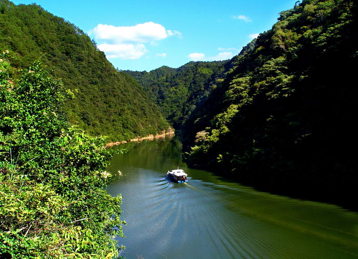“龍津峽”,位于九龍溪最美麗富饒中段的龍津河。而九龍溪發源于建寧,流經寧化、清流和永安,匯入沙溪,而后作為三大主要支流之一匯成福建最大的河流閩江,流經福州馬尾和 瑯歧島后注入東海。龍津河是一條秀麗清澈的河流,兩岸青山延綿,風光旖旎, 在清流縣城內自西北向東南蜿蜒流過,并以優美“S”圖案,把整個城區分為東、西兩個美麗的小半島,因此清流縣城又有“太極水城”和“內陸鼓浪嶼”的美稱。龍津峽是龍津河自然風景最優美秀麗的一段,素有“小三峽”的美譽,長約 12.5公里。現在,請隨我上船,一起去觀賞龍津峽的俊秀美景吧! 景區重點景觀介紹 【龍津河】【南極山】 說起龍津河流域的美麗富饒,還有一段神奇的傳說呢。 很久很久以前的清流,本來沒有河,只有一條很小的水溝。有一天玉帝到凡間游覽,發現這里群山疊翠,鳥語 花香,景色迷人,但是美中不足,缺少一條清亮的河流。于是玉帝委派一條天龍在這里開拓河道,并且要它引來“海底山”和“神泉眼”的清泉水。這條天龍非常盡職,夜以繼日挖掘好造型優美的河道;日夜兼程從武夷山的主脈杉嶺山南麓的九縣山引來泉水( 武夷山脈是由于遠古時代地球造山運動從海底升起的一座山脈,所以稱作“海底山”)——河道立刻碧波蕩漾;天龍又馬不停蹄在縣境內四處尋找、挖掘“神泉眼”——神泉眼涌出汩汩溫泉、冷泉和各類礦泉水,河水立刻又清又亮;天龍完成全部任務后,終于累倒了,當它吐出最后一口神泉,再也起不來了,便化作了清流縣的“龍脈山”——南極山。請看我們船的右邊、清流縣城的東半島、北門渡口以南的這一整條山脈。歷代地理風水師都認為,這條山脈就是清流縣的“龍脈”,和清流縣的發展繁榮息息相關,因此清流縣歷代的(縣衙)縣政府都建置在東半島這塊“龍頭”風水寶地上。玉帝為了表彰天龍的功德,就把天龍開拓的河流命名為龍津河,然后又對“龍脈山”吹了幾口仙氣,頓時南極山上霧靄蒸騰、白云繚繞,成為清流縣最古老的著名八景之一“南極白云”,使龍脈山受人世代慕仰和贊美。玉帝許諾天龍:在這里潛心修煉并且護佑清流縣,等到清流“良田變花園、荒坡披景秀、河湖魚滿倉、神泉沐貴賓,龍山生龍角”的時候,就是天龍修成正果之日,天龍便可以重獲新生、騰云駕霧重返天庭。有道是 “山不在高,有仙則名。水不在深,有龍則靈。”,可能正是因為如此,雖然清流縣地小人少、地處偏遠,卻能夠英才輩出,物產豐饒,百姓安居樂業。 【金鼎時代廣場】【樊公廟】【樊神佛山】 位于清流龍津大橋旁、河岸邊那座高大壯觀的高層住宅,就是清流縣的最新標志性建筑——金鼎時代廣場。金鼎時代廣場占地 3781平方米,總建筑面積3萬多平方米,總投資將近一個億,由名仕閣、風尚閣、君臨閣三個單元組成,高度分別是 21層、20層和23層,是目前清流縣最高的建筑。金鼎時代廣場所處的位置是一塊傳說中充滿靈氣的風水寶地,從宋代至近、現代,那一帶(包括現在附近的私人住宅、單位住宿樓等以及山腳下很大的范圍)曾是一座規模宏大 的樊公廟。樊公,原名樊令,五代秀州華亭縣人(今上海松江區),唐末官至銀青光祿大夫,奉命入閩剿寇,戰死于清流的羅城之凹。 宋朝淳熙年間,清流人為了紀念他保衛縣城的功績建造了樊公廟,俗稱漁滄廟,樊公被尊為 “樊王福主”、“樊神”、“樊公尊王”,是福建省境內26大民間神靈之一,也是清流縣的福主神。 據古縣志記載,樊公廟落成當晚,出現了神奇的“天開眼”現象,天空中自西向東,光照明如皓月,電焰搖曳,一開即合。 清流縣人每年八月十四至廿九或卅日都要舉行隆重的迎神樊公會,紀念樊公八月二十八日誕辰。在宋、元、明、清時期,清流縣的八月 樊公會逐步與商品貿易結合,發展成為華南數省非常重要的一個貿易中心。會期從七月底一直延續到九月份,湖南、湖北、江西、浙江、廣東、福建以及 廣西、四川、蒙古各省的客商都會如期運送各地貨物云集到這里,在樊公廟附近進行貿易。會期內有“奉神像出游、游燈慶神、演雜劇樂神、送神歸廟、縣官致祭、 信眾還愿”等多項大型民俗活動,屆時人山人海、通宵達旦、熱鬧非凡 。在宋代,出現了許多樊神顯靈御寇捍災的神話傳說,元代時樊公被敕封為“漁滄感應王”。樊神顯靈流傳最廣的故事有兩個。一個顯靈驅寇:宋朝紹興年間,江西巨寇來攻清流城,當時城中兵力很弱,根本無力護城,正在大家驚慌所措的時候,前方士兵回來報告說:那些盜賊自動逃跑了,抓到的一個俘虜招供說,聽到清流城金鼓如雷,突然看見一員大將帶領大隊兵馬,刀槍林立,旌旗獵獵,從廟后山上向他們沖去,盜賊全部嚇得四散奔逃。另一個是顯靈清除 狡詐邪惡行為:傳說明朝萬歷年間,一次八月樊公會期間,剛剛把樊神請出來準備“ 奉神出游”,廟后就火焰沖天并且無法撲滅,但是樊神卻保全了。大家都覺得這次火災很蹊蹺,雖然清流經常有火患和寇變,但是建了七百多年的樊公廟一直安然無恙。后來發現,原來有個 奸詐小人想偷占樊廟這塊風水寶地的靈氣,居然把祖墓移到這里。于是樊神震怒,發起神火揭露并清除這一惡行。之后,清流人很快又重新修建起更加壯觀華美的樊公廟。由于樊神驅寇護縣、抗旱除病、趨吉避兇、有求必應,因此樊公廟歷來香火鼎盛。一直到 1966年,樊公廟在紅衛兵破“四舊”運動中