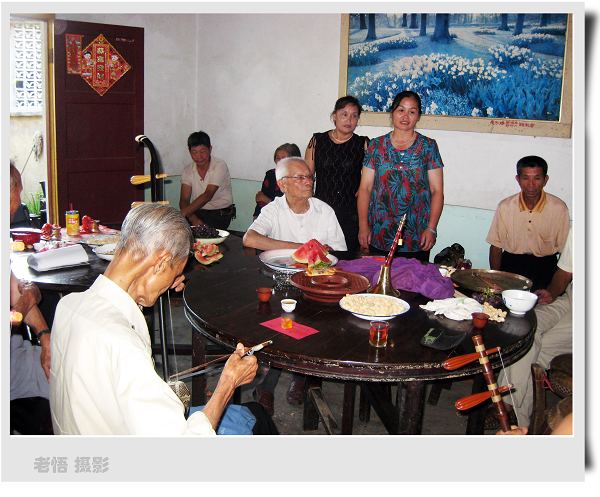 同樂會是業余團體,大家憑著興趣走到一起,在活動中尋求快樂,在為社會默默奉獻中獲得快樂。談起參加同樂會心得, 89歲的王傳三感觸間頗有幾分自豪。 王傳三老人回憶,抗日期間,同樂會編演曲目,倡導抗日救國,當時有近10 名會員帶頭參加了紅軍和游擊隊。會員還響應購買飛機抗日號召,每人至少捐出5塊大洋。鄰近的明溪縣籌建學校,同樂會的 40余名會員前往義演半個月,門票所得悉數捐助。解放后,縣廣播電臺自辦節目不多,許多同樂會員受邀成為嘉賓,每個星期他們都要對著話筒,現場演唱京劇,通過廣播為當年文化生活相對匱乏的群眾,帶來一次又一次的快樂享受。近年來,黨的惠民政策溫暖全民,同樂會更是不甘落后,爭當志愿先鋒,以“京腔”廣泛宣傳征兵工作、計劃生育、平安建設、護林防火、醫療衛生等。 在同樂會內部,長期以來,也始終洋溢著奉獻互助之風。巫桃增是名駕駛員,未入會前,父親巫萬程及同樂會其他成員前往鄉下或外地演出,巫桃增都是“私車公用”,免費服務。父親去世后,巫桃增“補了員”,當起了樂師,同樂會需要用車,更是隨叫隨到。會員中倘遇逢有人操辦紅白喜事,眾人熱情伸手,幫助解決。湯順平, 2005年危房改造,缺少資金,大家慷慨解囊你500、他 1000助其渡過難關。1980年,巫桃增房屋受災,全體會員不約而至,幫忙清理塌方。 有了這樣的氛圍,大家聚在一起更加快樂。楊維仁會長說,隨著電視、網絡、VCD 的普及,城鎮居民業余文化生活日漸豐富,可京劇同樂會會員卻始終當好京劇“粉絲”,樂此不疲。官火根,59 歲,父親官陶章在1961年困難時期,牽頭創辦了南歧京劇同樂會,受其影響,官火根很早就加入了同樂會,現在城區銷售谷種,遇有活動,他都會放下手中生意,前來參加,問為何有如此動力,官火根笑容滿面:快樂是金錢買不到的! 91歲的鄒學富老人是紅軍失散人員,在會員中年齡最大,每次同樂會活動,他都要步行十幾華里前來。對此,老人有自己的說法:步行參加活動強健體質、愉悅心身,可謂一舉二得。 寧化92歲的退休教師肖戴農,是名“編外會員”,經常到清流參加活動。去年農歷正月初二晚走路不慎摔倒,腦皮出血,第二天老肖瞞著家人,如期赴約在清流舉行的清流、寧化、明溪三個縣票友聯歡會。龍津同樂會活動室至今還貼著他寫的一幅對聯:拉胡琴益壽延年、唱京劇怡情養生。