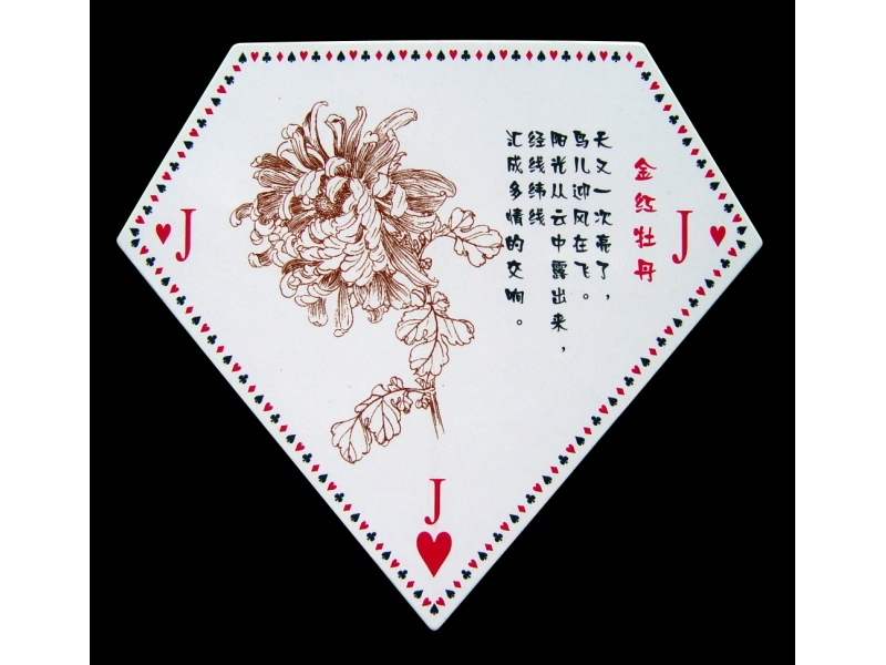 013電烙撲克 014竹塑麻將撲克 015泥塑立體撲克 016剪紙撲克 017彩色剪紙撲克 018刺繡撲克 019夜光腰鼓形 020葉子牌(撲克牌的鼻祖)
