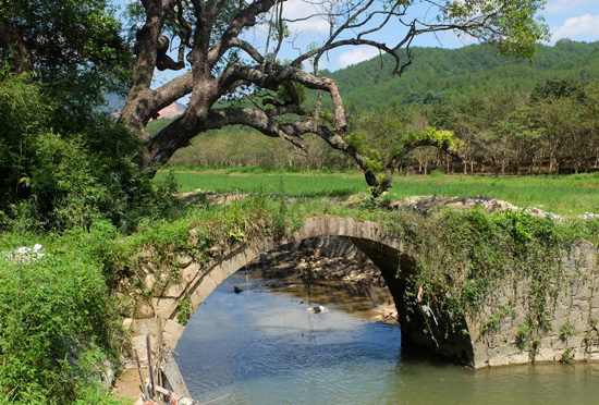 村中古橋 村中保留有明溪經林畬、嵩溪到寧化的古道、古橋、古樹、古陂等歷史遺跡。保留較完整的古橋是崗尾石砌拱橋,歷經幾百年滄桑至今還橫臥山溪兩岸,古橋石塊鋪就,橋面不寬卻能容兩馬并行。相傳古時工匠建橋時僅差一石,幾次橋難以拱型,后經仙人指點一石,工匠用之橋即拱成。該橋歷經百年山洪至今不跨,實為罕見。如今兩岸村民來往勞作仍靠此橋通行。 更有《清流縣志》記載,羅陂崗下轄的一個自然村叫國母洋,是宋朝文天祥侍國母楊太后過此地,曾在此地留宿因此得名的村莊。國母洋是歷史名村,留下了許多動聽的故事,讓清流人家喻戶曉代代相傳。 流傳較廣的是“紅點青蛙”,相傳宋景炎年間京城淪陷,南宋王朝倉皇出逃。丞相文天祥侍護國母一路南逃,途經清流縣嵩溪境內的國母洋,一路勞頓奔波、深感困乏的楊國母決定在此地休整數日借宿此村。時值春季,山村夜晚青蛙爭相鳴唱,擾的國母難以入眠,便呼丞相文天祥去捉一只青蛙回來,丞相領著隨從走出門外,在禾從中抓到一只青蛙供奉國母發落。楊國母接過青蛙仔細端詳,只見它雙目微凸、肚皮鼓脹,直盯國母,國母從案頭取過一支筆蘸著紅朱砂在它額頭輕輕一點,深情地說:“如今國事堪憂,待收復宋室江山之日,爾等再共同金鼓齊鳴吧!”說罷將青蛙放歸田野。果然,群蛙鼓噪之聲嘎然而止。從此這個村的青蛙額頭都有一點紅色,村人稱之為“紅點青蛙”,直至如今,每到春夏之夜,國母洋的青蛙仍是默然無語。 嵩溪豆腐的傳說,國母在山村期間,三餐是清水煮黃豆,吃得乏味。一天,國母問:“農家有這么多黃豆,何不做些豆腐改善伙食?”文丞相稟告國母“做豆腐需要石膏,當今戰亂頻繁,外地石膏運不進來,沒有石膏是無法做成豆腐的”,國母笑指對面山上說:“用樹葉也能替代石膏做豆腐。”旋即,幾名隨從由村人領著上山采回一種樹葉,將樹葉揉搓出汁液漚成鹵水,用來做豆腐果然豆漿凝成豆腐花,做出的豆腐比石膏做的豆腐更為鮮嫩,村人稱之為“樹葉豆腐”。這是歷史的真實記錄,直至如今嵩溪豆腐,以及嵩溪豆腐皮依然享譽八閩。文天祥在國母洋期間,盡管力求抗元,卻無回天之力,不由憂憤填胸,欣然揮筆賦就:“山高不礙乾坤眼,地小能容宰相身”的著名聯句,以釋胸中之塊。隨著時光的流逝,文相在清流留下的名句讓后人記憶猶存。