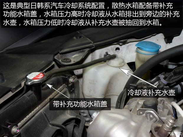 部分日韓系車除了冷卻液補充水壺外,在水箱散熱器上還有一個水箱蓋。如果發現補充水壺里還有冷卻液,正常補加即可;如果補充水壺無冷卻液,就需要打開水箱蓋,打開方法和上述方法一樣,先將水箱補滿冷卻液后再將補充水壺液位添加到正常刻度。另外,上述方法適用于冷卻液少量缺失,水溫表顯正溫度常情況下,如果出現冷卻液大量缺失或水溫表顯示水溫高,此時就需要立即停車并呼叫救援。在緊急狀態下可以用純凈水代替冷卻液,將車輛開到最近的修理廠維修。