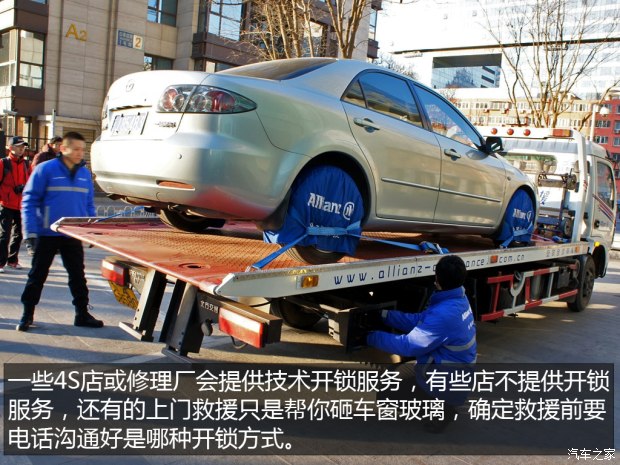 找開鎖公司 折中辦法 著急的車主可以選擇正規開鎖公司,開鎖公司會用專業工具從鎖芯處將車門打開,并且對鎖芯沒有任何損傷。開鎖前在電話里詢問需要哪些相關證件,最好一次準備齊全,開鎖價格大概在200-500元之間,豪華車或偏遠地區可能要高于這個價格。 ![]() 拖車救援 耗費時間 一些4S店或修理廠也會提供開鎖服務,他們會用特殊技術手段將車門解鎖,但前提是要將車拖到維修車間。目前很多保險公司提供免費拖車救援服務,車輛遇到問題給保險公司打電話也是很好的方式。