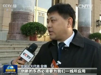 全國人大代表 金鋒:緊張。后來總書記問到我的專業方面,我就開始一點點放松。創新的東西必須要為我們一線所應用,這個才是創新的目的。我們要抓緊學習,跟上這個時代 從會場回駐地的大巴車上,周振波代表用一連串的“沒想到”表達自己的心情。