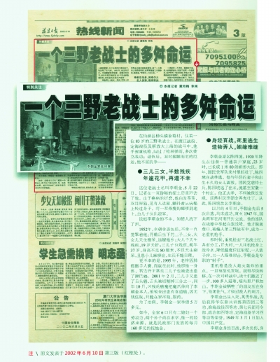 溫暖的牽掛 前行的力量 編者的話 閩山閩水,春暖情深。在全省人民奮力再上新臺階、建設(shè)新福建,以優(yōu)異成績喜迎黨的十九大之際,本報《喜迎黨的十九大》系列報道今天啟動,推出第一個專欄《向總書記說說心里話》。 福建是習(xí)近平總書記的第二故鄉(xiāng)。在福建長達(dá)十七年多的工作中,習(xí)近平同志進(jìn)行了一系列的探索和實踐,為福建改革開放、經(jīng)濟(jì)社會發(fā)展和黨的建設(shè)事業(yè)留下了寶貴的精神財富,成為十八大以來黨中央治國理政新理念新思想新戰(zhàn)略重要的思想和實踐源頭。福建人民對習(xí)總書記懷有深厚的感情,在貫徹落實治國理政新理念新思想新戰(zhàn)略中,以最大的自覺勇于擔(dān)當(dāng),用“再上新臺階、建設(shè)新福建”的偉大實踐和豐碩成果,回報總書記的親切關(guān)懷,不負(fù)總書記的殷切期望。我們將通過系列報道,追尋總書記當(dāng)年在閩的探索與實踐腳步,圍繞總書記來閩考察和對福建工作的指示與囑托,回顧總書記對福建人民的親切關(guān)懷和深厚感情,書寫新福建建設(shè)的精彩華章,抒發(fā)八閩兒女對總書記的深情厚誼,推動全省上下更加自覺深入地學(xué)習(xí)貫徹黨中央治國理政新理念新思想新戰(zhàn)略,增強(qiáng)看齊意識,凝聚發(fā)展合力,更加緊密地團(tuán)結(jié)在以習(xí)近平同志為核心的黨中央周圍,為實現(xiàn)中華民族偉大復(fù)興的中國夢而努力奮斗。 熱忱歡迎廣大讀者為我們提供線索,參與互動。福建日報新聞客戶端《新福建》、東南網(wǎng)等新媒體同時開辟專欄,敬請關(guān)注。 東南網(wǎng)3日27日訊 (福建日報記者 戴艷梅 陳榮富 潘園園) 故事回放 15年前,習(xí)近平深情地為一名老戰(zhàn)士捐款 記錄者說:有牽掛,就有溫暖 本報2002年6月10日3版 “善為國者,遇民如父母之愛子,兄之愛弟,聞其饑寒為之哀,見其勞苦為之悲?!?/p> 今年元旦,習(xí)近平總書記在新年賀詞中說,“我最牽掛的還是困難群眾”,溫暖了無數(shù)人的心。 這樣的牽掛,由來已久! 作為一名曾被“牽掛”的人,32歲的陳翔宇聆聽新年賀詞,心潮澎湃!他此生難忘,15年前,在全家面臨困境之際,是黨和政府的直接關(guān)懷、是習(xí)近平的牽掛和資助、是社會各界愛心人士的馳援救急,幫其渡過難關(guān)。他和弟弟得以繼續(xù)學(xué)業(yè),發(fā)憤努力,從此改變命運。 陳翔宇的爺爺——李朝金(原名陳四境),一位參加過渡江戰(zhàn)役、定海戰(zhàn)役的三野老戰(zhàn)士,多次榮立戰(zhàn)功。退伍返回家鄉(xiāng)仙游縣榜頭鎮(zhèn)象塘村后,隱功埋名數(shù)十載,晚年卻不幸和兒子雙雙罹患癌癥,因家貧無錢治療。全家六口人只有兒媳婦一個勞動力,唯一的經(jīng)濟(jì)來源就是民政部門發(fā)放的每月163元的撫恤金。那一年,陳翔宇讀高二,弟弟在小學(xué)畢業(yè)班,兄弟倆面臨輟學(xué)。 2002年6月,福建日報以《一個三野老戰(zhàn)士的多舛命運》為題,報道李朝金一家的困境,牽動了社會各界的心。 本報2002年7月1日2版 時任福建省人民政府省長習(xí)近平看到這篇報道后,高度重視。2002年6月18日,習(xí)近平從自己的工資中拿出1000元,委托福建日報記者轉(zhuǎn)交到李朝金這位83歲老人手里。同時,對相關(guān)問題作出重要批示:“像李朝金這樣為革命勝利負(fù)過傷、流過血的老退伍軍人,應(yīng)該讓他們同其他老人一樣有一個幸福的晚年。莆田市、仙游縣、榜頭鎮(zhèn)三級政府和民政部門雖然已給予了相應(yīng)救助,但要從根本上解決問題,還需要政府部門和全社會共同努力。此類事情社會上時有發(fā)生,應(yīng)想辦法建立一種社會救助機(jī)制,在各級民政部門加大對病、殘和‘五?!藛T等社會困難群體進(jìn)行扶持的同時,也發(fā)動社會各界及時對他們進(jìn)行救助?!?/p> 根據(jù)習(xí)近平的批示精神,省里要求有關(guān)部門進(jìn)一步完善現(xiàn)行的低保制度,建立上下溝通、多方關(guān)心、形成合力的救助機(jī)制;同時,要求民政部門發(fā)揮職能,組織、協(xié)調(diào)、宣傳、發(fā)動社會各界包括有關(guān)社會團(tuán)體,救助困難群眾。 隨后,莆田市的各級黨政領(lǐng)導(dǎo)前往李朝金家慰問,解其燃眉之急。仙游縣廣泛發(fā)動社會各界結(jié)對幫扶困難黨員、救助困難群眾,積極探索建立長效幫扶機(jī)制。榜頭鎮(zhèn)黨委召開專題會議,形成《關(guān)心困難群體,舉一反三完善社會救助機(jī)制》的決議,對困難群體進(jìn)行調(diào)查摸底,造冊登記,開展各種幫扶活動,使全鎮(zhèn)范圍內(nèi)的困難群眾都得到關(guān)心和幫助。 病榻前的李朝金老淚縱橫:“為窮人求解放,多少戰(zhàn)友犧牲了生命,我只不過出了一點力,受了幾次傷。到了晚年,黨和政府還這么關(guān)心我,省長還這么關(guān)心我,我真的很感動?!?/p> 他最牽掛的兩個孫子的求學(xué)問題,得到了結(jié)對幫扶解決。2002年7月8日凌晨,李朝金安詳?shù)仉x開了人世。 15年過去了,困難群眾始終是習(xí)近平最牽掛的人。其深厚的為民情懷,也在福建得以延續(xù)。 建立基本的社會救助制度,確保困難群眾生活得到有效保障,成為多年來福建各級黨政部門的實際行動。歷任省委省政府堅持以人民為中心的發(fā)展思想,從解決人民群眾普遍關(guān)心的突出問題入手,辦好省委省政府為民辦實