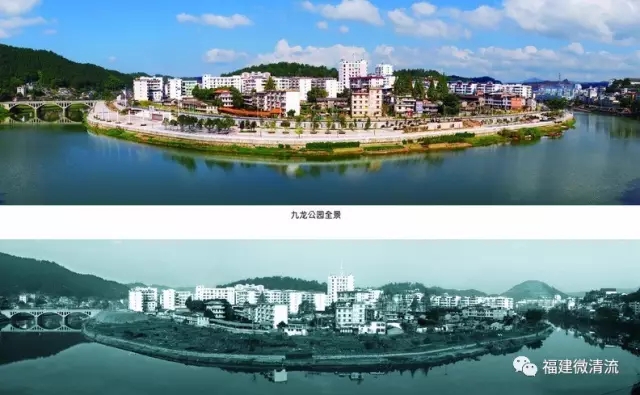 不知那位丹青大師,在九龍溪的上游畫了一個(gè)大S,從此閩西的深山里,有了一條蜿蜒十里的龍津河,自西向南,再繞北,又往東,碧水縈回,奔流不息,從高處往下看,好似一條飛龍,穿行在連綿起伏、凝香聚翠的青峰里,猶如龍行太極。 大師意猶未盡,時(shí)而頓筆凝思,時(shí)而揮毫潑墨,田野阡陌、樓臺(tái)亭榭、市井街巷,錯(cuò)落有致地排列在龍津河畔,古清流城關(guān)就此誕生,牧童騎歸攪起田園芬芳,鍛打剪刀鉆子的聲音清脆悠長,河邊浣衣女子輕盈飄逸。 在大師筆下,應(yīng)墨而生的還有東華翠嶂逶迤陡峭,南極白云蓮花拱頂,西橋橫笛流水歡歌,北渡孤舟蕩漾碧波,龍津望月水天一色,雁塔曉鐘倩影麗音,半溪?dú)堁┚К撎尥福庇拷鹕彎舅w濺,或位于河上,或立于河岸。這古八景有的古樸典雅,有的自然靈動(dòng),滋養(yǎng)了一代又一代的清流人,又讓一代又一代的清流人景仰斌頌。