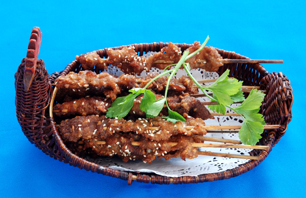 羊肉串 羊肉的烹調(diào)方法很多,可蒸、煮、炒、熏、燉、煨、涮、拌等。按照羊肉的食療、食補(bǔ)功能,目前清流羊肉系列產(chǎn)品主要有:天麻燉羊頭、藥膳燉羊骨、白切羊肉、椒鹽羊蹄、醬味羊肝、滑炒羊肚、咖哩羊排、羊肉串、手抓羊肉、羊肉兜湯、羊肉水餃、羊肉烊豆腐、紅燒羊肉、湯白羊肉等,讓你吃后絕對留連忘返。不信你試試。(廖海洋) |