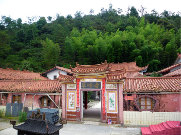 福源寺位于中軸線的末端,在大山深處,青磚灰瓦、古樸典雅,綠樹掩映,修竹搖曳,對(duì)岸五條山脊并排直下長潭河,好似五龍汲水,又象五馬爭食,是塊極佳的風(fēng)水寶地,很早以前就有道士、僧人在此結(jié)廬修煉。相傳,出生在后唐的歐陽真仙,于宋初在清流賴坊的大豐山修煉,經(jīng)過靈臺(tái)山,看到此山云遮霧繞,仙氣飄渺,古樹蔥郁,澗水潺潺,松竹彈奏,飛鳥和鳴,是一處上好的修行之所。于是,真仙率弟子在靈臺(tái)山筑茅屋立行宮,常到此頌經(jīng)傳道。歐陽真仙在大豐山圓寂后,為紀(jì)念真仙,信眾便將這座山命名為仙人嶺,也稱仙人峰,并在山中筑建歐陽真仙廟,祀奉歐陽真仙,成為靈臺(tái)山寺廟群的發(fā)祥地。后又在近處擇一盆地興建福源寺,供奉釋迦牟尼、觀音菩薩、彌勒佛等,四鄰八鄉(xiāng)信眾相擁上山朝拜,到此祈求平安吉祥。