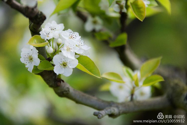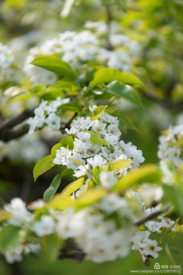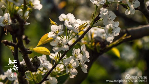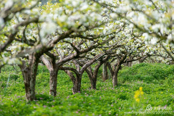 晶瑩透白的梨花瓣下,包涵了多少光鮮,綻放了多少期待,漫野的白花,鮮活、明媚、皓腕,以淡妝素裹揮灑出一幅多姿的畫卷。