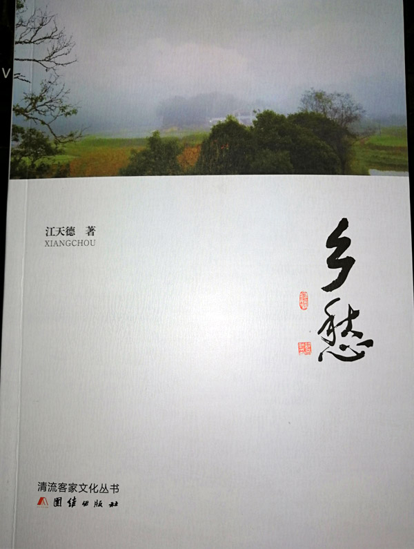 ●江天德 近日,《鄉愁》散文集付梓由《團結出版社》出版了。感謝《三明日報社》副總編、三明市作協副主席詹昌政先生為《鄉愁》散文集美顏作序,縣人大原主任許天贈先生為本書題寫了書名,族兄祖芳題寫了《鄉愁》書法作為封底,與《鄉愁》詩文相得益彰;李增祥、鄧炳輝、雷根旺等領導,葉國斌、董美英、張華等好友為文章結集增輝添色。 記得有句話說,板凳要坐十年冷,文章不寫一時空。回想,在政協工作的崗位上也正好十年嘍。2006年12月30日,調入政協工作以來,做過經科辦、提案委、經濟和社會事業委、文史學習和民族宗教委等崗位工作;2007年12月12日,縣客家聯誼會三次代表會議換屆時,感恩許天贈、鄭鶴培、黃德駿等人的舉薦,被推選為副會長兼秘書長;從此,進入客家世界,了解客家,服務客家。2013年8月20日,縣客家聯誼會三次代表會議換屆時,感恩李增祥、鄭鶴培等人的舉薦,又被推選為常務副會長兼秘書長;在服務客家、研究客家的過程中,有一些個人的思考和感悟,寫了一些客家風情習俗方面的東西,感受清流這片廣袤而厚重土地上濃濃的鄉愁,許多深入腦海揮之不去的永恒記憶和美好珍貴的難忘回憶,讓我久久品味久久珍藏于心田。這些年,由于在政協和客家工作的關系,主編和編輯出版《中華客家祖山文化園楹聯詩文》《定光文化研究》《中華客家祖山文化論叢》《清流客家古建筑》《清流客家禮儀》《“三坑”記憶――清流古村拾遺》和《清流革命遺址遺跡通覽》等客家文化系列叢書以及政協文史資料書籍達10余冊。總之,個人的電腦文件夾和書櫥總是滿滿當當,自認為是寶貝的資料。也常常為尋找舊作煞費苦心,找破腦殼。文章千古好,由此萌生結集出版這十年來的一些文字和書稿,把它命名《鄉愁》,讓它有個歸宿有個窩,也便于收尋和文友分享快樂。知名作家吳爾芬說:“一位土豪鄙視的對我說,我蓋的30層以上的高樓至少超過50棟,你的書算什么?我問他,100年以后,你的高樓大廈還存在嗎?我的書一定會在某個角落旮旯里頭找到。鋼筋水泥的房子,50年就成為危房,房產權也不過短短的70年。唐朝那么偉大,留給我們的不過就是幾首詩幾張畫。所以,書的命一定比高樓大廈更長。”這是作家的驕傲所在,也是書籍的魅力所在。 這本《鄉愁》散文集共分為客家風味、客家探源、客家風情和附錄共四輯有54篇。其中收錄葉國斌、董美英、張華三位本地作家書寫褒獎編者的文章,以資鼓勵和鞭策。有位散文家寫道:“鄉愁是什么?鄉愁是記憶里故鄉的那些人和那些事,是永遠盤踞在你心里難以泯滅難以忘卻的淡淡憂傷。不經意間想起,會讓你獨自悵惘與思量。鄉愁是什么?鄉愁是一把富有記憶力和生命力的藤蔓類植物的種子,當你離開故鄉第一天就已在你心底種下,它會隨著你離開的時長而茁壯成長,直到爬滿你的身體和心房。鄉愁是什么?是我對故土往事的一切懷念,已在我心田孕育成一朵朵金色菊花,它盡情綻放,一片一片的化為甘霖,在某個思鄉月明之夜的夢的彼岸,凝結成憂愁之霜。鄉愁是什么?鄉愁是我們的根,是我們故土的方向標,是黑夜里的一盞明燈;無論何時,無論何地,無論我們貧富、貴賤,只要你愿意跟她走,就能到達魂牽夢繞的故土,到達安全厚實躲避風雨的美麗港灣!”是的,鄉愁是對家鄉的感情和思念,對故土的眷戀是人類共同而永恒的情感,鄉愁也是每個人的故事,是深入骨髓里的事。于是,那怕是簡單文字的表達,還是濃墨重彩的涂鴉,最重要的是情感深處的眷戀和懷念,深深地愛它永遠地愛它,生育養育的這方水土。