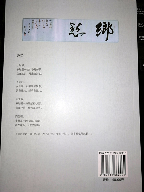 這本《鄉愁》散文正在結集之時,也就是2017年12月14日上午10時,詩人余光中在高雄因病去逝,享年九十歲。那個寫出了“鄉愁是一枚小小的郵票”“藍墨水的上游是汨羅江”這樣的詩句的人,那個曾經想像生命的終結是返鄉的人,就這樣靜悄悄地走了,給靈魂貼上了一枚郵票,返回了他生命的上游與故鄉。他就這樣悄悄的走了,遠遠的離開了我們,留下的只有那一抹悠悠的鄉愁。詩人余光中去世的消息一出,許多人都在自己朋友圈里轉發了這首獨一無二的《鄉愁》來紀念這位作家,這位詩人,這位翻譯家,這位評論家,這位一生淡泊名利,只是讀大學時就立志當個作家的老人!我在本書散文集《鄉愁》封底原文摘錄此詩,謹以此詩紀念《鄉愁》詩余光中詩人,愿鄉愁依然綿長。(本文為《鄉愁》散文集后記。《團結出版社》2018年4月一版) ? |