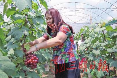 ???? 7月13日,游客正在清流縣金春源農業生態有限公司水果基地采摘葡萄。據基地負責人李篤斌介紹,進入7月水果旺季以來,每天通過采摘游售出的葡萄、西瓜、火龍果等水果約400公斤。 (三明日報清流記者站巫建輝)
