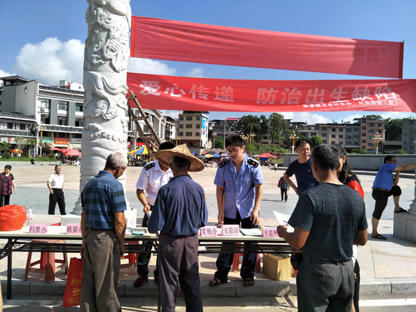 此次活動以設置宣傳咨詢臺,懸掛宣傳橫幅、LED屏幕滾動播放和發放宣傳資料等形式開展。活動中,志愿者們穿梭于鎮區商鋪及趕集群眾中,發放食品安全、掃黑除惡、扶貧政策等宣傳資料共計800余份。