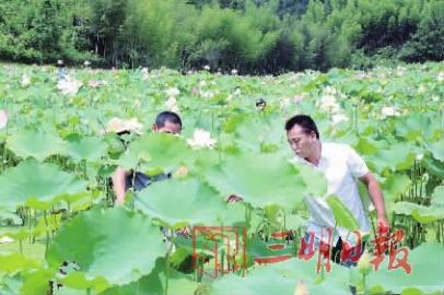 “接天蓮葉無窮碧,映日荷花別樣紅”,清流縣嵩口鎮范元村廖元宏順生態農業有限公司藕業基地里,近300畝連片荷花競相開放,景色優美怡人。 這家公司負責人羅忠華,是嵩口廖元人,在外做五金生意10年,得知國家大力實施鄉村振興戰略,他有了回鄉創業做生態農業的想法。 2017年,羅忠華流轉土地,進行土地整改,建設立體養殖基地,種植荷花、蓮藕,塘中養魚,同時建成蓮子深加工生產線一條,目前的銷售產品主要有水果蓮、草蓮、干蓮、蓮心茶、荷葉茶、蓮粉沖泡劑等。 今年,300畝荷花迎來第一年收獲季,現在每天產蓮2000多公斤,預計今年產值將會超過200萬元。 小羅不忘與父老鄉親共同致富。他讓村里的3戶貧困戶以土地租讓的形式入股分紅,并提供就業崗位?!皬恼麻_始給公司管理、采蓮子、拔草,3000多元一個月,”貧困戶羅必祥說,“家里面還有20畝地租給公司,年底分紅差不多2萬元?!?br/> 采摘季節,基地每天固定用工十幾人,到采摘旺季時還將安排近百個工人同時作業。 荷花盛開,吸引了不少觀光者,特別是周末,常有攝影和書畫愛好者前來拍攝寫生。羅忠華打算做木棧道、木屋,把鄉村旅游結合進來,借機推銷蓮子。(三明日報清流記者站 巫建輝)
