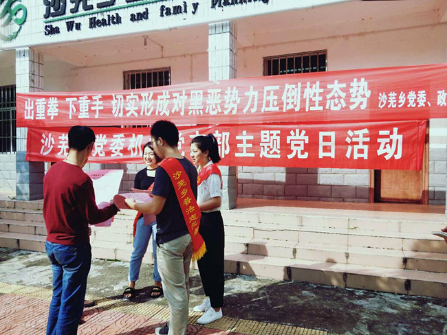 為進(jìn)一步加大掃黑除惡專項(xiàng)斗爭(zhēng)宣傳力度,廣泛發(fā)動(dòng)群眾支持和積極參與掃黑除惡專項(xiàng)斗爭(zhēng),9月10日,沙蕪鄉(xiāng)利用圩天在全鄉(xiāng)以多種形式集中開(kāi)展掃黑除惡宣傳活動(dòng),在全鄉(xiāng)創(chuàng)造濃厚的掃黑除惡輿論氛圍。