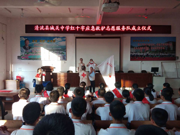 近日,為提高青少年的自救自護能力,構建平安校園,弘揚“人道、博愛、奉獻”的紅十字精神,推進文明校園的創建,清流縣城關中學成立紅十字應急救援志愿者服務隊。清流縣紅十字會工作人員及城關中學紅十字應急救護志愿服務隊志愿者等共50余人參加成立儀式。