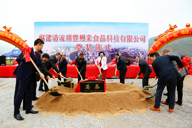11月23日,清流縣舉行翔豐鰻業食品科技有限公司烤鰻加工項目開工奠基儀式。 奠基儀式上,株式會社中日友交商會社長成加妹,中日友交商會常務、清流翔豐鰻業董事長戴建國,縣政府及縣直機關有關經濟部門領導共同為項目開工奠基。