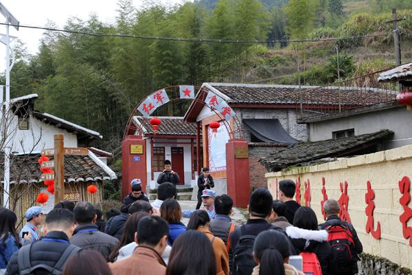 走進村莊,隨處可見的紅軍墻體彩繪和紅色標語,敘說著革命老區的歷史故事,新橋鄉司法所所長是嶺下村的包村干部,當天,他以一身紅軍的行頭打扮為來此采訪的記者做介紹,錚錚歲月似乎近在眼前。 嶺下村是一座集田園文化、古色文化、紅色文化為一體的傳統古村,也是中央蘇區基點村,建檔立卡貧困村,村民的主要收入來源為種植水稻、煙葉和培育竹山,收入有限。 “把資源轉化為資產,增加村民和村財收入,是我們建設美麗嶺下的第一要務”。黃洪財說。 近年來,嶺下村圍繞新橋鄉打造“閩贛邊界生態文化特色小鎮”的定位和“黨建強起來、百姓富起來、文化興起來、家園靚起來”的目標,通過挖掘自身旅游資源,建成了紅色展廳、老游擊隊員之家、紅軍食堂、紅軍文化墻等一系列紅色旅游項目。
