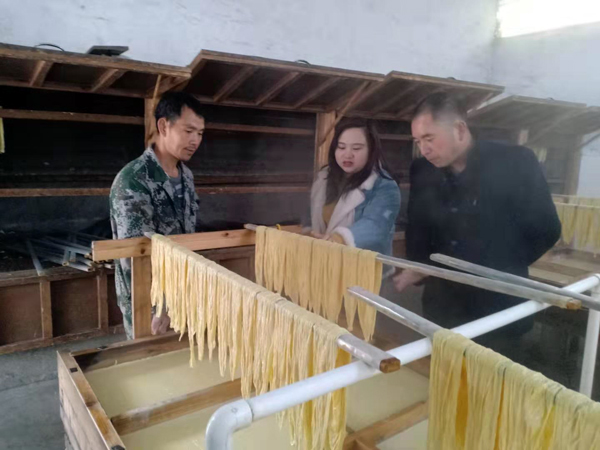 1月19日,在清流縣溫郊鄉小池村林政根家的豆腐皮加工廠內,夫妻倆一邊做著豆腐皮一邊和扶貧干部聊著家常。 “今年我們一家的手頭總算寬裕一點了,算下來光豆腐皮加工和鮮切花大棚就有近7萬元的收入,你們的扶貧資金真的是幫了我大忙。”林政根感激地說。