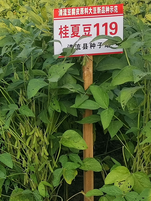 清流豆腐皮加工原料主要是黃豆。清流縣豆腐皮加工企業,在長期生產加工中發現,產于嵩溪與林畬的黃豆,易於化漿又有很高的產出率。于是,他們建設大豆生產基地,積極主動與農業主管部門聯系,配合開展大豆新品種示范與推廣。 2021年,清流縣種子站承擔國家和福建省大豆新品種試驗,清流縣豆腐皮加工企業利用這一有利條件,在嵩溪鎮建立豆腐皮生產原料大豆新品種示范,試種500畝閩誠豆8號、桂夏豆119兩個高產大豆品種。通過展示大豆新品種的高產特征特性,加快大豆新品種的推廣種植,促進大豆生產,帶動村民致富。目前,大豆新品種示范長勢良好,正處于鼓粒期,豐收在望。