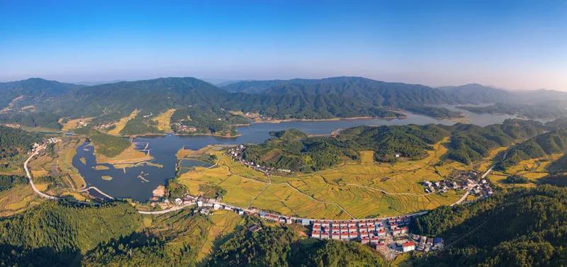 清流縣沙蕪鄉(xiāng)九龍湖畔稻田豐收