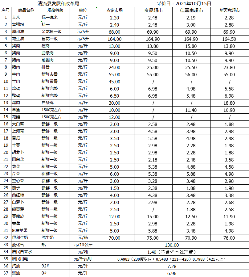 清流縣民生價(jià)格行情(采價(jià)日:2021.10.15)