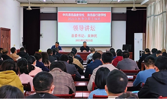 10月25日,清流縣委黨校、縣行政學校舉辦2021年秋季學期開學典禮。縣委書記吳鐘民,縣委常委、組織部部長孔鵬飛出席開學典禮 。