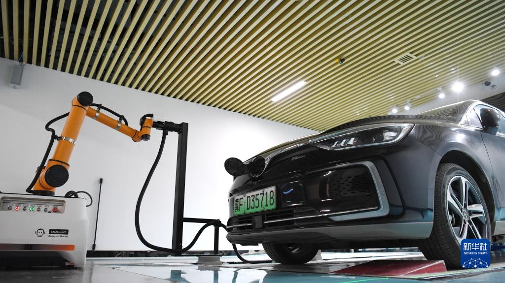 在雄安新區(qū)劇村變電站智慧充電區(qū),插拔槍機(jī)器人為一輛電動(dòng)汽車充電(3月18日攝)。新華社記者 朱旭東 攝 聚焦創(chuàng)新、改革、開放,打造京津冀協(xié)同發(fā)展的重要增長極—— 雄安新區(qū)智慧交通示范項(xiàng)目現(xiàn)場,通過“5G+北斗”無人化業(yè)務(wù)運(yùn)營平臺,無人接駁車、無人零售車、無人清掃車、巡邏機(jī)器人等多種無人車和機(jī)器人統(tǒng)一調(diào)度,全部實(shí)現(xiàn)無人化作業(yè)。 智能、綠色、創(chuàng)新是雄安新區(qū)重點(diǎn)打造的亮麗名片。“必須堅(jiān)持‘世界眼光、國際標(biāo)準(zhǔn)、中國特色、高點(diǎn)定位’理念,努力打造貫徹新發(fā)展理念的創(chuàng)新發(fā)展示范區(qū)。”習(xí)近平總書記指出。
