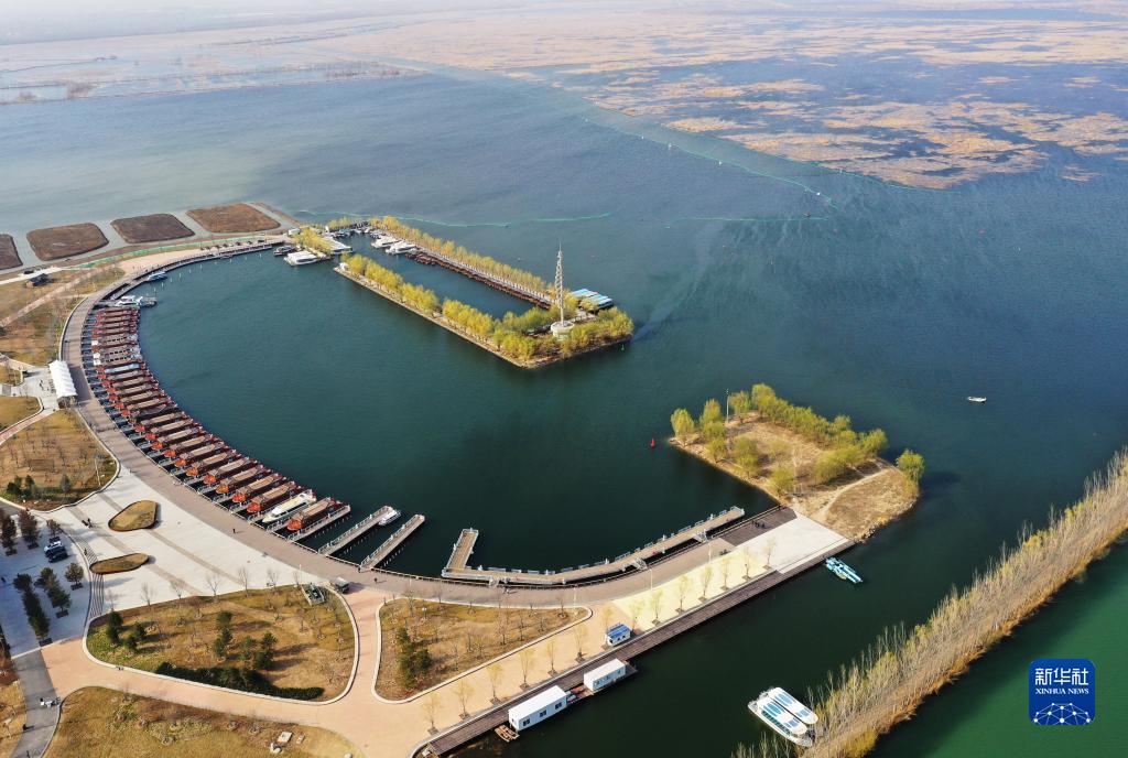 這是3月28日拍攝的雄安新區(qū)白洋淀旅游碼頭(無人機(jī)照片)。新華社記者 朱旭東 攝 在雄安新區(qū)規(guī)劃展示中心,談到雄安新區(qū)下大氣力處理城和淀的關(guān)系,習(xí)近平總書記強(qiáng)調(diào):“當(dāng)時(shí)選址在這,就是考慮要保護(hù)白洋淀,而非損害白洋淀。城與淀應(yīng)該是相互輝映、相得益彰。” 如今,“千年秀林”工程累計(jì)造林45.4萬畝,雄安郊野公園、悅?cè)莨珗@等一批高品質(zhì)休閑設(shè)施投用,雄安新區(qū)森林覆蓋率由11%提高到32%,營造出“城在林中,人在景中”的意趣。