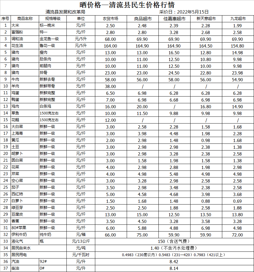 清流縣民生價(jià)格行情(采價(jià)日:2022.05.15)