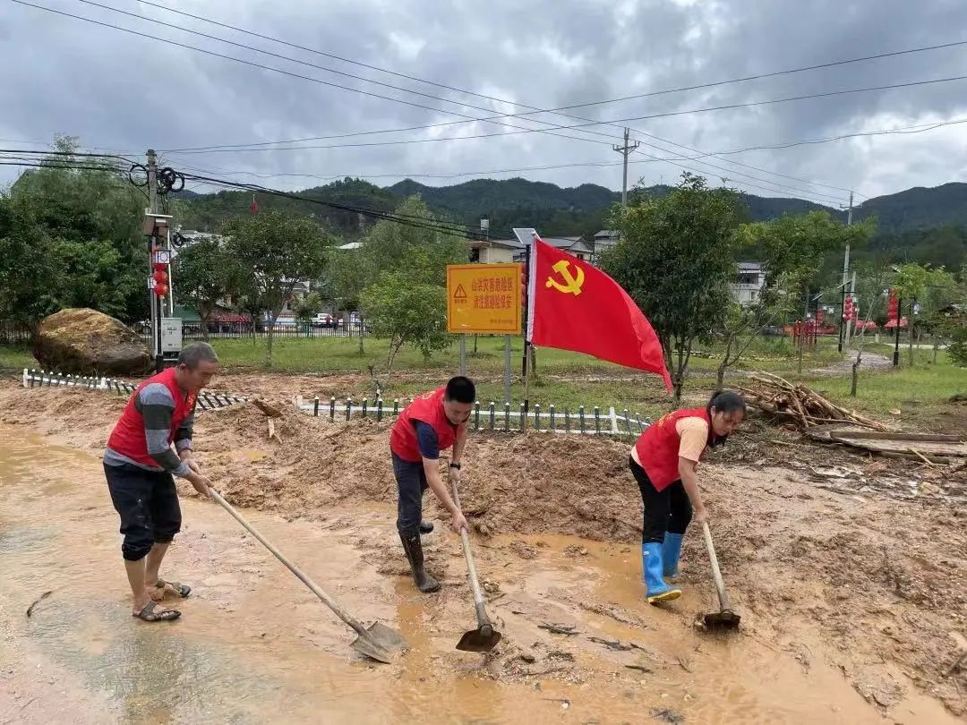 在賴坊鎮陳家村,記者看到,村書記、主任沈俊文正帶著村里黨員干部清理著村口的淤泥。賴坊鎮陳家村是這次受災較為嚴重的一個村, 6月13日當天,降雨量近190毫米,村里多處路段出現泥石流、塌方。洪災過后,沉積的大量淤泥,嚴重影響村里災后生產恢復工作的開展。這段時間,沈俊文顧不上自家受災,都在村里忙著組織開展災后自救各項工作。