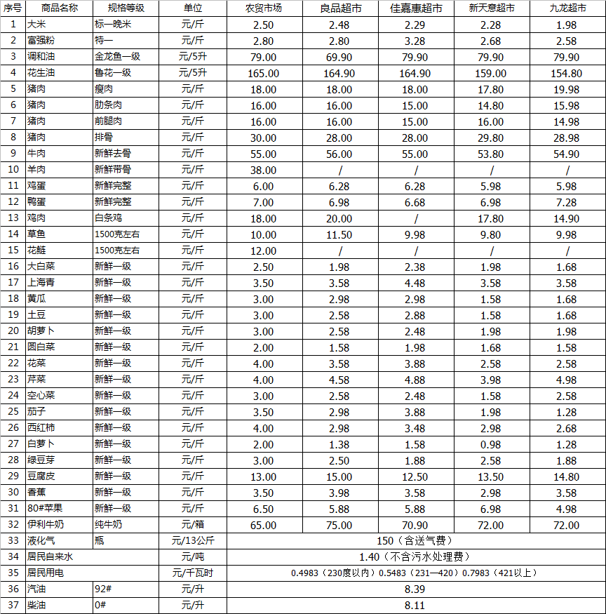 清流縣民生價格行情(采價日:2022.08.10)