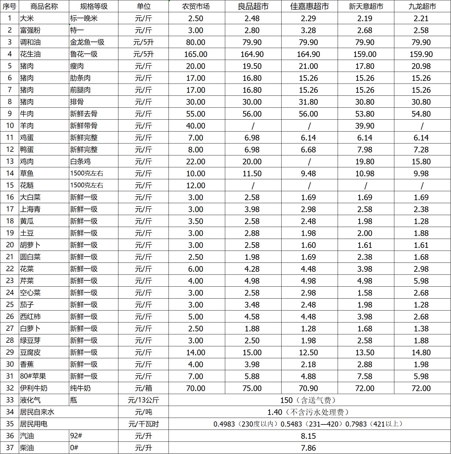 清流縣民生價格行情(采價日:2022.09.30)