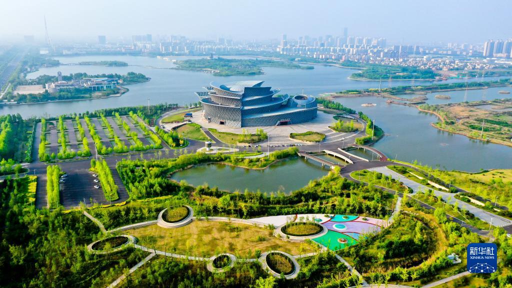 東營市清風湖景色(2021年5月12日攝,無人機照片)。 山東省東營市有近海與海岸濕地、河流濕地、湖泊濕地、沼澤濕地、人工濕地等5類14型濕地,濕地率41.58%。其中,山東黃河三角洲國家級自然保護區,是中國暖溫帶最廣闊、最完整、最年輕的濕地生態系統。2018年,東營市被評為全球首批“國際濕地城市”,并形成了“藍綠交織、清新明亮,濕地在城中、城在濕地中”的城市特色。 新華社記者 郭緒雷 攝