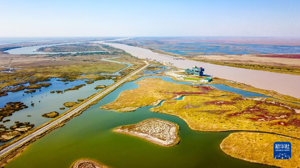 山東黃河三角洲國家級自然保護區景色(10月18日攝,無人機照片)。 山東省東營市有近海與海岸濕地、河流濕地、湖泊濕地、沼澤濕地、人工濕地等5類14型濕地,濕地率41.58%。其中,山東黃河三角洲國家級自然保護區,是中國暖溫帶最廣闊、最完整、最年輕的濕地生態系統。2018年,東營市被評為全球首批“國際濕地城市”,并形成了“藍綠交織、清新明亮,濕地在城中、城在濕地中”的城市特色。 新華社記者 郭緒雷 攝