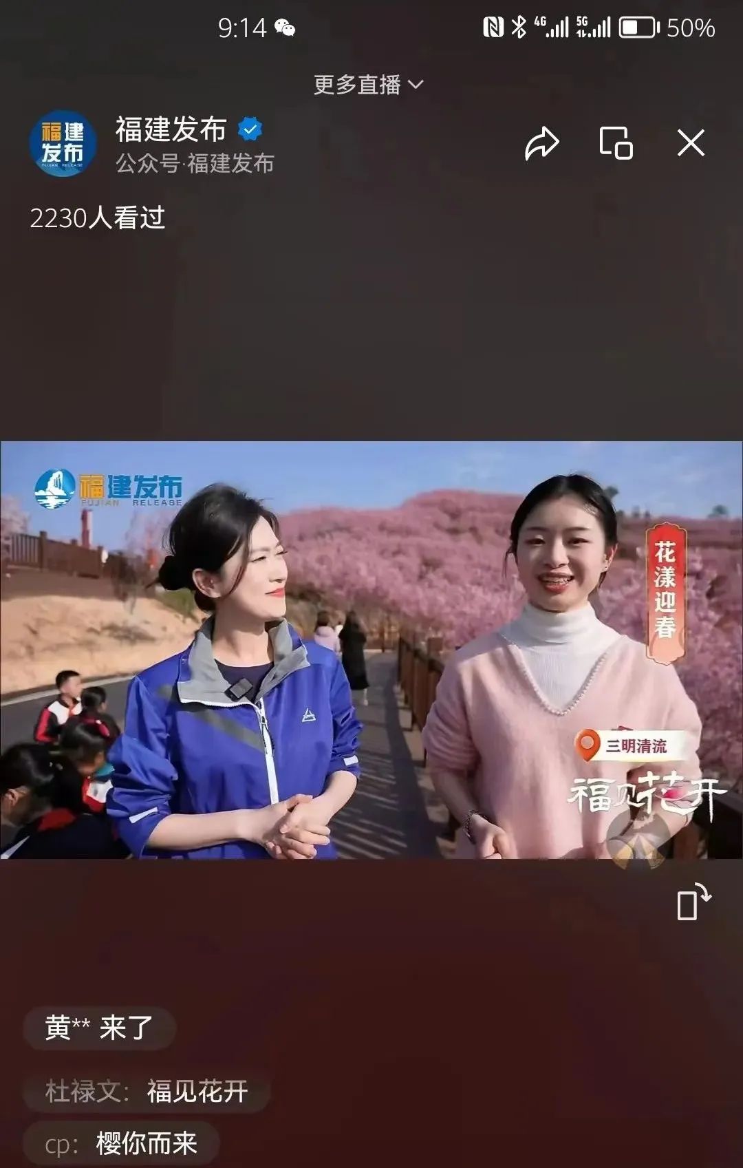 這個(gè)特別節(jié)目由福建發(fā)布、福建新聞?lì)l道、福建鄉(xiāng)村振興頻道同步直播,打通大小屏,聯(lián)動(dòng)新華網(wǎng)、央視頻、華人頭條等全國(guó)、海外媒體,并推送全省市縣級(jí)融媒體中心等共70多個(gè)新媒體平臺(tái)同步播出,全網(wǎng)累計(jì)播放量超千萬(wàn)次,轉(zhuǎn)發(fā)、評(píng)論、點(diǎn)贊、社群互動(dòng)量超26萬(wàn)次。其中,直播在新華網(wǎng)總網(wǎng)首頁(yè)展示,央視頻首頁(yè)、直播頁(yè)雙頁(yè)中心位置推薦,在重要移動(dòng)端平臺(tái)也獲得優(yōu)質(zhì)內(nèi)容流量?jī)A斜,引發(fā)全網(wǎng)觀眾“云賞花”熱潮,怒放的櫻花也已成為清流縣的一張燙金名片,每年到了櫻花盛開(kāi)的時(shí)候,這里便花如海,人如潮。