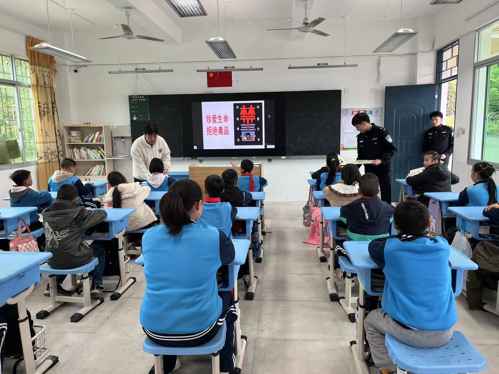 為進一步普及毒品預防知識,提高學生抵御毒品的能力,增強自我保護意識12月11日,嵩口中心小學聯合嵩口鎮綜治辦、派出所舉行了以 “擁抱健康 遠離毒品”為主題的校園禁毒宣傳進校園活動。