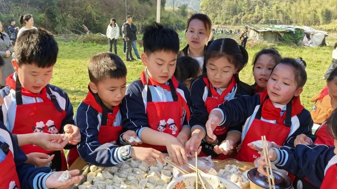 野炊環節將實踐推向高潮。家長與孩子們分工協作,壘灶生火、洗菜切配、翻炒烹煮。“小廚師”們圍在鐵鍋旁,學著翻炒野菜雞蛋,雖動作生疏卻干勁十足。炊煙裊裊中,孩子們分享勞動成果,品嘗親手制作的美食,臉上洋溢著成就感。