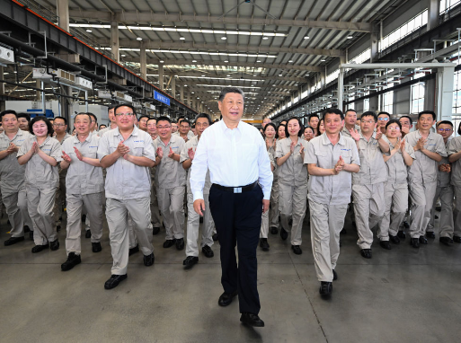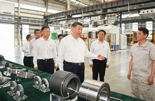 河出潼關,在一望開闊的平原滔滔東去,伊水洛河蜿蜒匯流,華夏曙光于此初現,“昔三代之居,皆在河洛之間”。 肇興于斯、燦爛于斯。中原大地,五千多年文明賡續綿延、大開大合的歷史舞臺。 初夏時節,習近平總書記赴河南考察,來到洛陽。 汽車駛入洛陽軸承集團股份有限公司的廠區,“挺起民族軸承工業的脊梁”一行金色大字,在陽光下格外醒目。 這家企業,前身為“一五”期間建成的洛陽軸承廠,鐫刻著民族工業的光榮和夢想。 2014年那次來河南,總書記同樣考察了一家大型制造企業——中鐵工程裝備集團有限公司,興致勃勃登上一座85米長的盾構機裝配平臺,語重心長地說:“裝備制造業是一個國家制造業的脊梁”。 2019年,在鄭州煤礦機械集團裝車間,總書記仔細察看液壓支架產品,鮮明強調:“制造業是實體經濟的基礎,實體經濟是我國發展的本錢,是構筑未來發展戰略優勢的重要支撐。” “脊梁”“支撐”,關乎立國之本、強國之基。 此次在洛軸,習近平總書記關注的是被稱為“工業關節”的軸承。