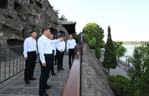 新華社記者 燕雁 攝 離開洛軸時,工人們簇擁著總書記,激動地鼓起掌來,機器轟鳴,步履鏗鏘。 文明著史,時勢造城,人是其中的根本力量。 數千年前,二里頭王都熔爐里的熊熊火焰,點燃華夏青銅文明的薪火;新中國成立之初,千軍萬馬會中原,制造業重鎮洛陽綻放工業光華;乘新時代東風而上,一個日新月異的現代城市,屹立于洛水之濱。 “若問古今興廢事,請君只看洛陽城?!遍_元大道、絲路大道、唐韻路、定鼎門街、解放路、建設路……一條條道路縱橫,印證著這座十三朝古都由挫折而奮起、經苦難而輝煌的城市史、文明史。 道路,連接過去、現在、未來。 華夏之中,南來北往。新時代河南,建成“米”字形高鐵網絡,是承東啟西、連南貫北的重要交通樞紐,全國“十縱十橫”綜合運輸大通道中有5條途經河南,交通格局與經濟版圖在刷新重塑,多項國家重大戰略在此交疊。 經濟大省、人口大省、糧食大省、文化大省,無論在文明版圖還是發展藍圖中,中原大地舉足輕重。 不可逆轉的歷史進程里,中原奮進,中部崛起,中流擊楫。習近平總書記曾寄予厚望:“中部地區這個‘脊梁’要更硬一點,‘補補鈣’,發揮更大的支撐作用?!?/p> 此次考察,總書記進一步要求河南認真落實黨中央關于中部地區加快崛起、黃河流域生態保護和高質量發展等戰略部署,“奮力譜寫中原大地推進中國式現代化新篇章”。 縱觀全局的宏闊視野,繼之以只爭朝夕的壯闊實踐?!爸胁康貐^,怎樣崛起?黃河流域,怎樣高質量發展?把歷史視角、戰略思維,都落實到具體行動上來。” 由中原而觀中部,居中州而覽中華,時空交織,亙古亙今之感尤為強烈。 習近平總書記來到龍門石窟,沿著伊河步行,凝望鐫刻在崖壁上的文明瑰寶。
